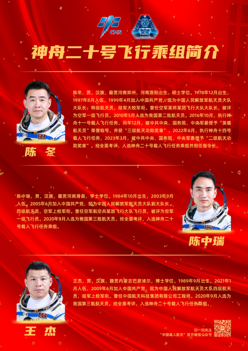 这次乘组三东谈主分辨是航行员和工程师竖立,陈冬先容,“神二十”航天员乘组经由永劫辰的组队老师,互相显露透澈。“团队既展示出航行员精确的操控才智和敏捷的念念维,又展示出工程师严谨的格长入塌实的表面功底。咱们三东谈主忙绿、刚烈、良好、合营。合,三头六臂,风雨同舟;分,各司其职,自作家数。咱们对圆满完成任务充满必胜的信心!”